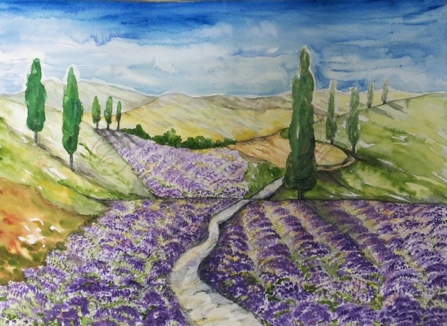 Aquarell - Landschaft - 45 Lavendelfelder