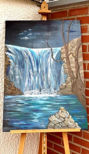 Bob Ross Farben - Landschaft 05 - Wasserfall auf Leinwand